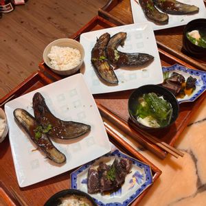 夕ご飯 炊き立てお焦げご飯 吸い物 三つ葉、落とし卵 藁焼き鰹たたき、わさび、ポン酢 茄子田楽味噌、甘めの油味噌を乗せて。 奥のトレーは、蒸しパンに茄子田楽味噌を挟んで。お隣さん用 お隣さんがグッドタイミングで来訪、食べて行く? 狙って来た様で心苦しいけど狙ってないからねと気にしてる。 いつもと違う少し遅目の晩御飯にピッタリで、何度も見計らって来てないからねと! 丁度吸い物作る時で落とし卵を一つ足して!