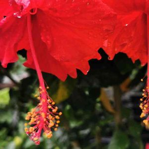 ハイビスカス 真っ赤な花びらは やはり南国の女王ですね。 真ん中から伸びる花弁が綺麗ですね。