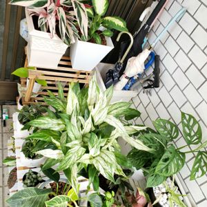 人の顔より大きな葉の斑入りモンステラ😍 カラテアちゃんは なんか3枚だけ背が高くなっちゃった💦