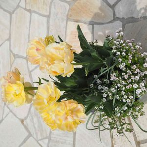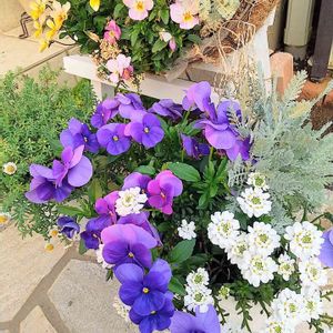 すっかり春ですね🎵 クリスマス前に作った葉牡丹リースをリサイクル。 葉牡丹を抜いて、プリムラとラベンダー色のビオラ、ラビット咲きのビオラを足しました。 スイートアリッサムも切り戻して。 黄色のビオラ2種がいい感じにボリュームがでてきていい感じ☺️