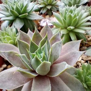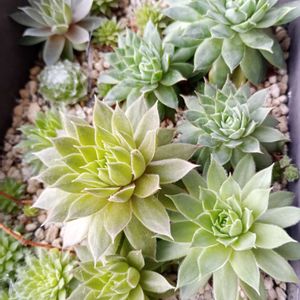 センペルビウムたちがとっても元気です(๑•᎑•๑)🩷 pic①子株が出てきましたよー⋆*🧸 pic②ペキニーズ集団も緑の色が綺麗です✨ pic③名無しさんたちもとっても大きくなりました! pic④⑤綺麗に色付いている子もいます( ⁎ᵕᴗᵕ⁎ )❤︎ たくさん増えてくれると嬉しいな(⑉• •⑉)🩷 成長期:春と秋 置き場所:春と秋はたくさん日に当てるようにする。夏は鉢内の温度が高くならないように、ベランダなどの風通しが良い日陰に移動させる。 水やり:成長期は土が乾いたり葉にしわが寄ったりしたらたっぷりと。休眠期は控えめにして、葉に元気がなくなったタイミングで水やりをしても大丈夫。 肥料:丈夫で育てやすいため、肥料ではなく活力剤で育てる方が育てやすい。 耐寒温度:-5℃ 開花時期:2月〜7月 花を咲かせると親株は枯死する。 増やし方:株分け、挿し芽、タネまき。