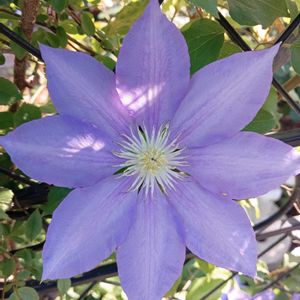 皐月・令和物語✨✨✨ 💜💜💜 クレマチス(テッセン)の花言葉は、一般的に「精神の美」「旅人の喜び」「策略」です. 特に紫色のクレマチスには、内なる精神性を引き出す力があるとされ、洗練された気品を漂わせると言われています. また、大輪の紫色のクレマチスは、社会的成功や情熱アップにも繋がるとも言われています. 精神の美: 細いつるが大きな花をつける姿から、精神的な美しさを表していると考えられます. 旅人の喜び: クレマチスは、つる性植物としてフェンスやアーチに絡ませることが多く、旅の楽しさを感じさせる姿から、この花言葉が付けられました. 策略: クレマチスは有毒植物であるため、その性質から「策略」という花言葉が付けられたという説もあります. 紫色のクレマチス: 風水的に、紫色は内なる精神性を引き出し、洗練された気品を持つ色とされています. クレマチスと風水: クレマチスの星型の花は、風水的に良いとされ、大輪の花を南に飾ると、情熱アップや社会的成功につながると言われています. 2025/05/03 撮影