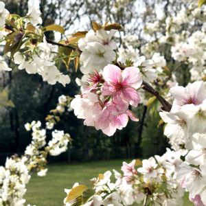 4月7日の砧公園です 白の中にピンクのお花🤍🌸🤍
