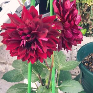 こんにちは*ˊᵕˋ* 昨日の大雨と打って変わって、今日は爽やかな秋晴れです。 昨日植え付けたばかりのビオラさんがたっぷりと水が吸えたからか生き生きとしてます。大雨に当たって心配していたけど…逆に一回り大きくなった感じ…。過保護にするより雨に当たった方がいいのかしら?😃 今日のpicは、ダリア「黒蝶」。 1度花が終わって、台風で家に入れた時にぶつかって蕾が折れてしまったのだけど…串とマスキングテープで補強。 無事に開花しました٩(*´︶`*)۶