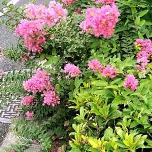 数年前に見つけたサルスベリは 歩道と車道を区切る植え込みから生えています 歩道の横の児童公園に生えているサルスベリの種が飛んだのかな?