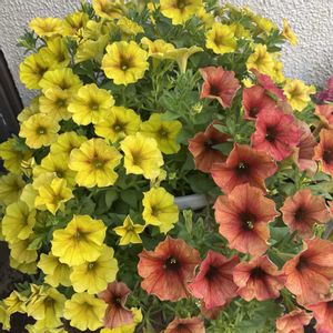 ビューティカルキャラメルイエロー 切り戻し後2週間でまたお花付けてきました 何故か1鉢は色が混じってます 切り戻ししても同じでした