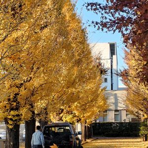 イチョウの葉っぱがすごいことになっていました😲 【1枚目】 イチョウ並木が午後の日差しに輝いていました🤩 【2枚目】 通路は黄色い絨毯です😍 【3枚目】 ドウダンツツジはイチョウの落ち葉の被害者になっていました🤭 (いずれも農業試験場内にて)