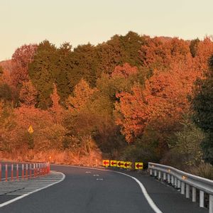 四季桜の里の帰り 東海北陸道を走行中 午後4時20分頃 色づいた山々を夕日が照らし とても綺麗でした✨ 午後5時半頃には 殆ど日も落ちて空には三日月が輝いていました🌙 『秋の日は釣瓶落とし』 日が暮れるのが 本当に早いです🌄