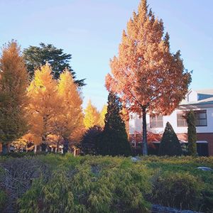 昨日は気温が高くて、快晴🌞 色づく木々が青空に映えて最高でした🥳 【1枚目】 メタセコイアとイチョウのコラボ 【2枚目】 チュッパチャプスのようなモミジバフウ 【3枚目】 いつもと反対側から撮ったイチョウ並木 【4枚目】 イチョウの葉っぱに覆われた路面 【5枚目】 とんがりコーンのようなイチョウの木々 以上です😀(農業試験場内にて)