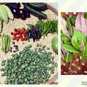 ☔️の中ですが野菜の成長は待ってくれないので☂️をさしカゴを持ち収穫完了😅