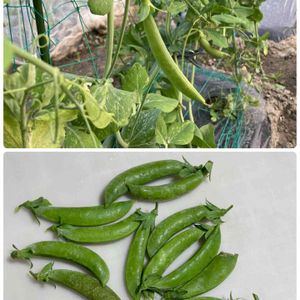 今日の畑 その1 砂糖えんどう スイートスナップ初収穫😋 以前糖度計で測ったら育てた中で1番糖度が高かったので、今年はこれ😋
