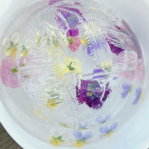 氷のリースの新作が完成🧊 今回は、完全に氷の中にお花を閉じ込めず、表面からちょっと飛び出るデコ仕様になりました❀ コレはコレでアリかもです☺