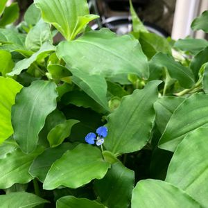 🌱💙ツユクサの仲間💙🌱 ①②丸葉露草(まるばつゆくさ) 花はツユクサより小さく 直径2.5cmほど 葉の幅が広く 丸っこくて縁が波うつ🌿〰︎ ③露草(つゆくさ) ④大帽子花(おおぼうしばな)