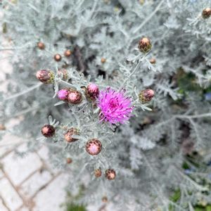 おはようございます☀️ 寒さの中🥶頑張っているシロタエギクさん🌼 お花の蕾が可愛いです💓 来週からは暖かくなるそうで 一安心です🤗