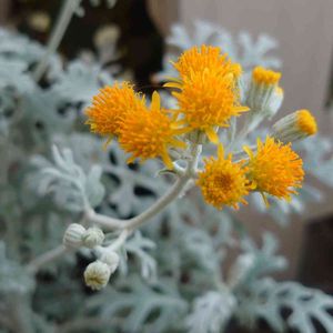 今日は暗いのでパァーとビタミンカラー! シロタエギクの花!
