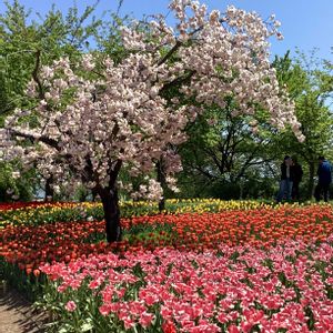 🌷チューリップ・サクラ🌸 長野県あずみの国立公園です😘 見事にチューリップ🌷🌷🌷が 咲いていました♪🎶💕 ╰(*´︶`*)╯♡