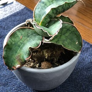 今日のお花サンスベリアパート2 タニザキ(サンスベリア キルキー シルバーブルー) まだ根が定着してないようでシワシワです👴 水吸ってくれー