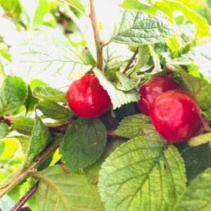 ユスラウメ 子供達が小さい時 おやつに食べた思い出の木 今年はツボミの時期に剪定してしまったのですが少しだけ実がなりました(o^^o)