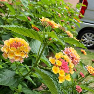 ランタナ こちらはビタミンカラーのオレンジです。 挿木でたくさん増えました(o^^o) 同じ親から同じ場所で育ったのに鉢植えの方が早く大きくなって早く咲く謎…