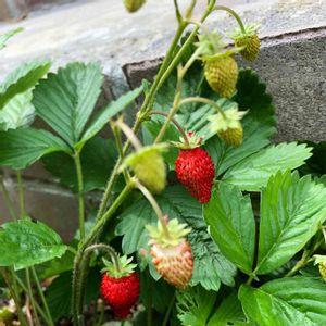 ワイルドストロベリー 実が赤くなりました 子供達が小さい頃よく食べてたなぁ〜 そんなにおいしくはないけれど可愛いです(o^^o)