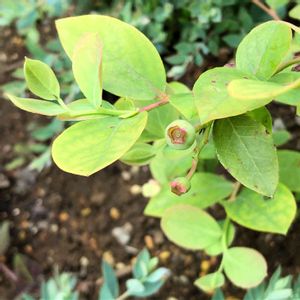 今年植えた小さな苗に2粒だけブルーベリーの実を発見!