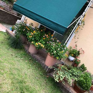 日差しも強くなって来たので新しいオーニング を取り付けました。 前のはサビサビのボロボロだったので💧 一人で悪戦苦闘 何度も倒してランタナが折れてしまいました(;_;)