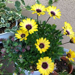 オステオスペルマム ビタミンカラーで元気が出ます。 他のオステオスペルマムは日が沈むとつぼむのにこの子はずっと開いています。 そして花もちが良いみたいです。