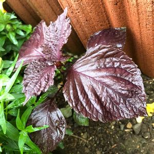 植えてないのにシソが生えてきました。 色が綺麗なのでそのまま花壇で育てています(o^^o) 梅干漬けるシソですかね〜