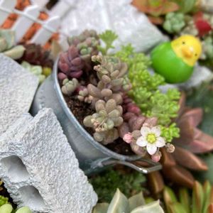 もう多肉はしばらく買わないと 誓っていたのですが… 100均 Wattsで小花付きの ナナミニフック 可愛すぎて買ってしまいました💦 今は仮住まい中