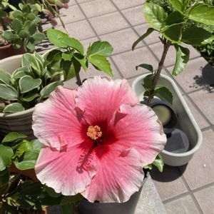 今一番元気な花はハイビスカス 昨年から育てていた、もう一つのハイビスカスが咲いてくれました。 一重だけど派手なんです。