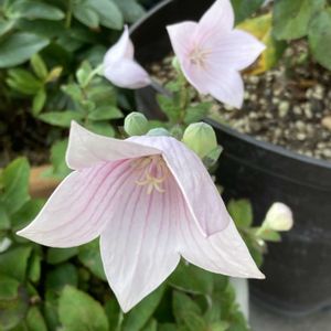桃色キキョウが咲きました。 花が無い時は、鉢がどこに有るのかわからないくらい放置しているのに、こんなに可愛く咲いてくれました。