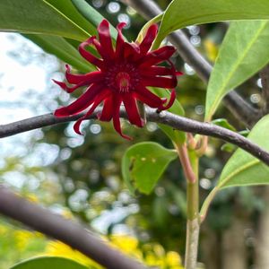 🔴🍀🔴 紅花シキミが 咲きました と 思ったのですが… 🙄 これは もしかして ロドレイア? 買った時の名札は シキミでした 🤔 ロドレイアも シキミも 実際見た事がありません でも 皆さんの投稿写真は ロドレイアですね 🤗 なので 有毒では 無かったです 😵