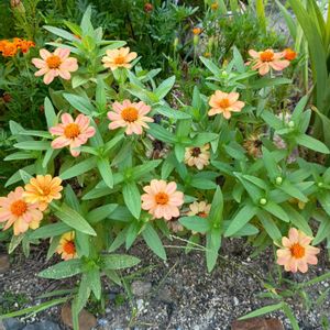 ①ジニアプロフュージョン、一株でこんなに広がりました! ②ミニガエルもいます🐸