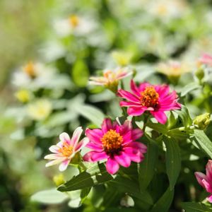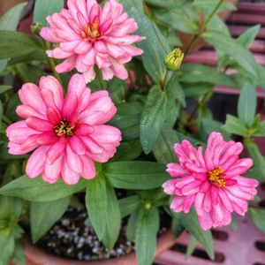 ピンクのお花達🌸 1️⃣ビデンスプリティインピンク 少し半日陰の場所で ずっと咲いてます🌸 2️⃣種からのジニア プロフュージョンバイカラー 3️⃣友達からもらったマツバボタンとコレオプシスマーブルローズ🌸