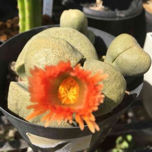 先日 雨の日に水やりを兼ねて外に出したままにしていました😁。夜半頃は 大雨でした。朝 パトロールすると、花芽のようなものが出ています。外に出した方が好きかな。