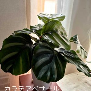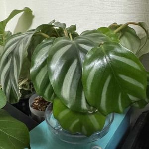 はぁ可愛い❤︎ しかもこの子、他のカラテアより葉っぱに厚みもあって丈夫🥰新葉の展開もはやいし育てやすいです❤︎1年経過。
