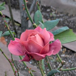 今日のお花✿ᵕ̈ 凍るような朝、凛と咲く薔薇🌹🍃 本来の優雅さはないけど、無心に咲く姿は美しい・゚✧ 今日も寒かったね😆