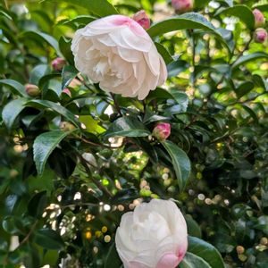 💕今日のお花 サザンカ💕 ①〜⑤ 二十数年たつ自宅の山茶花🥰 毎年十月中旬から咲き始めます🎶 今年は先日の初雪☃️と数日続いた強風🍃で、だいぶ傷んでしまいました💦