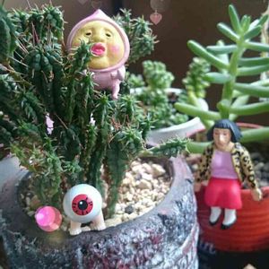 コンチャ☆(´ゝ∀・`)ノシ 先日のオヤジとキンタローの背景に使ってたやつ完成しました⤴(๑><๑)۶ DAISO産のペペロミアを入れてみました〜🎵