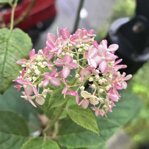 アナベルさんピンク🩷が2鉢 やっと新芽🌱が伸び始めました ミニ薔薇・ピエールドゥロンサールの蕾が 朝日を浴びてとてもキラキラ 輝いて見えました🥀