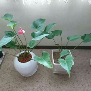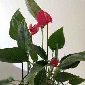 今日のお花、アンスリウム。 丸い鉢はこの春仕立て直し、お花は小さいながらももう2ヶ月間咲いてくれています。 四角い鉢の方は折れた2本の葉っぱから根が出て増えてくれたもの。葉っぱも増えて順調に育ってくれています💗