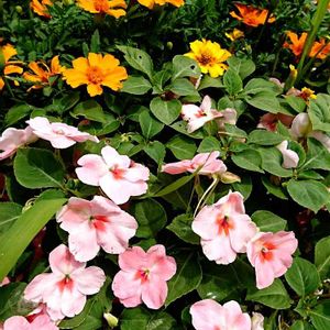 公園の花壇 インパチェンスと マリーゴールド💛💛💛