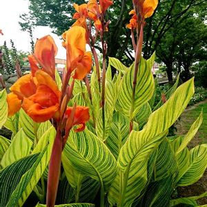 カンナ💛💛💛 葉が涼しげなのでカンナも暑苦しくみえません✴️✴️ 市内石橋文化センターにて
