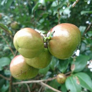 椿の実 果物に見えます🎵 赤く色づくと🍎にみえるかも❗ この実からツバキ油が採れるんですね🎵