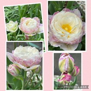 こんにちは😊 職場花壇のチューリップが可愛すぎて… やっとダブルサプライズが開き始めました。八重桜も日に日に姿が変わり楽しませて貰ってます💕