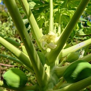 パパイヤの木🌴 たわわに実っていました☺️ 手裏剣のような形のお花も見ることができました🎶