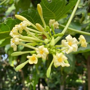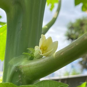 知り合いのお宅の パパイヤ、お花もまだまだ 咲きそう🌼 一本から何個採れるんだろ🤔 見事👏