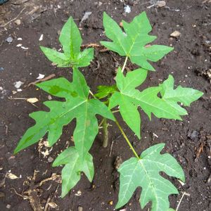 パパイヤの発芽🌱 実がある方は過去picで、最上部の柔らかい葉の部分にトカゲさんが居ました🧐