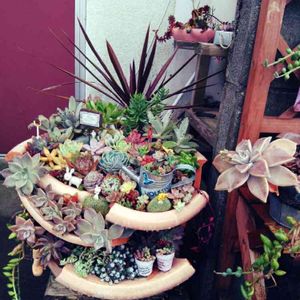 昨日は1日中多肉仕事🌼💕 前から買って 放置してた割れた鉢に寄せ植え(*´꒳`*)゚*.・♡ 飾りが無かったからあるもので間に合わせてつくりました😃 鉢代50円…💦