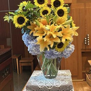 💐🏷️愛の花♡ 25000pic感謝💐 きょう2pic目失礼します きょうで、🏷️愛の花♡が25000pic を超えました❣️ みなさんたくさんご参加ありがとうございます😊 これからもよろしくお願いします🙇 ドラマらんまんからネーミングした🏷️ですから、お気軽につけてくださいね🤗💕 きょうの教会の装花はヒマワリ、ガーベラ、オンシジウムなどで華やかでした💐 教会の庭の紫陽花が2種類満開に咲いていて、とても嬉しく見てきました🎶 私の背丈くらい大きな株で剪定が上手なので、素晴らしい咲き方です👍 紫陽花には雨が似合いますが、もうすぐ梅雨入りですね どうぞお身体に気をつけて、良い日々になりますように祈っています💕 🏷️愛の花♡ 🏷️ありがとうの花❣️